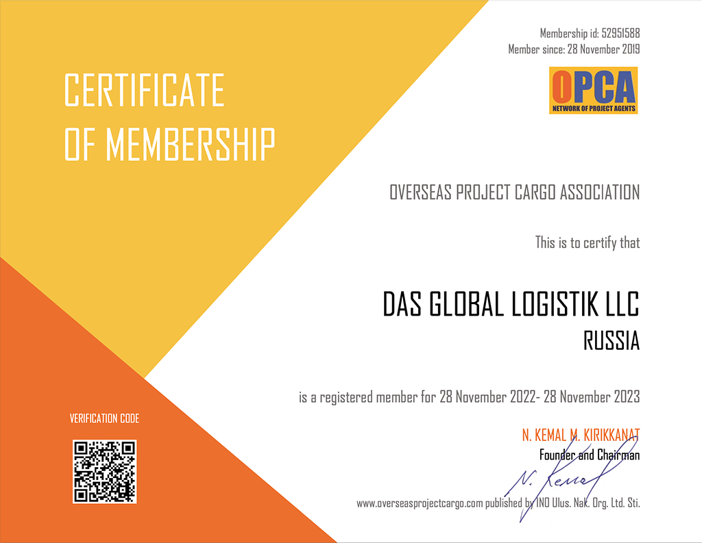 - Сертификат, подтверждающий членство в OPCA по проектным грузам на 2022 гг.